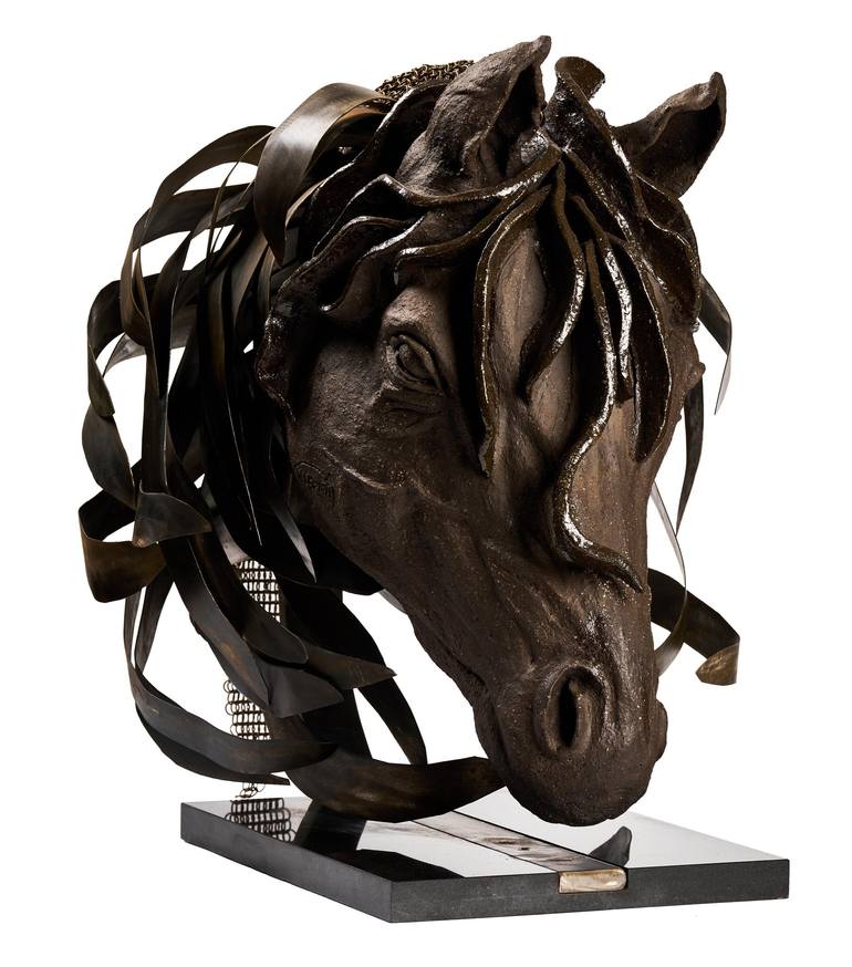 Tempest Mane is inspired by the raw energy of nature and the enduring strength of horses—symbols of freedom, intuition, and resilience. The turbulent flow of the bronze mane evokes storm winds, embodying inner unrest and emotional momentum. This piece invites viewers to reflect on the balance between chaos and calm, power and poise. The horse’s composed face contrasts with the wild, swirling textures, creating a tension that feels both grounded and electrified. Bronze was chosen for its permanence and expressive surface, while the sculptural style merges expressionism and surrealism to prioritize emotion over realism.
